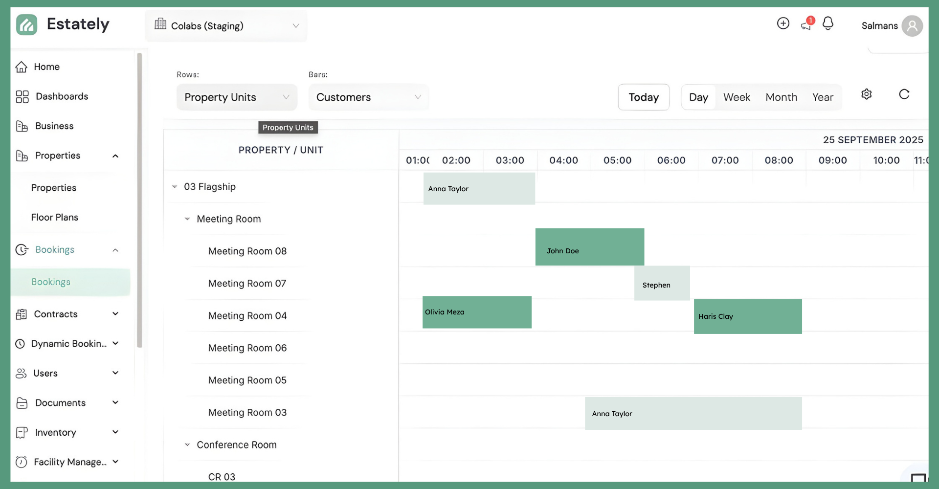 • Property Name — the property the booked unit belongs to (e.g., Acme Coworking Fairways)